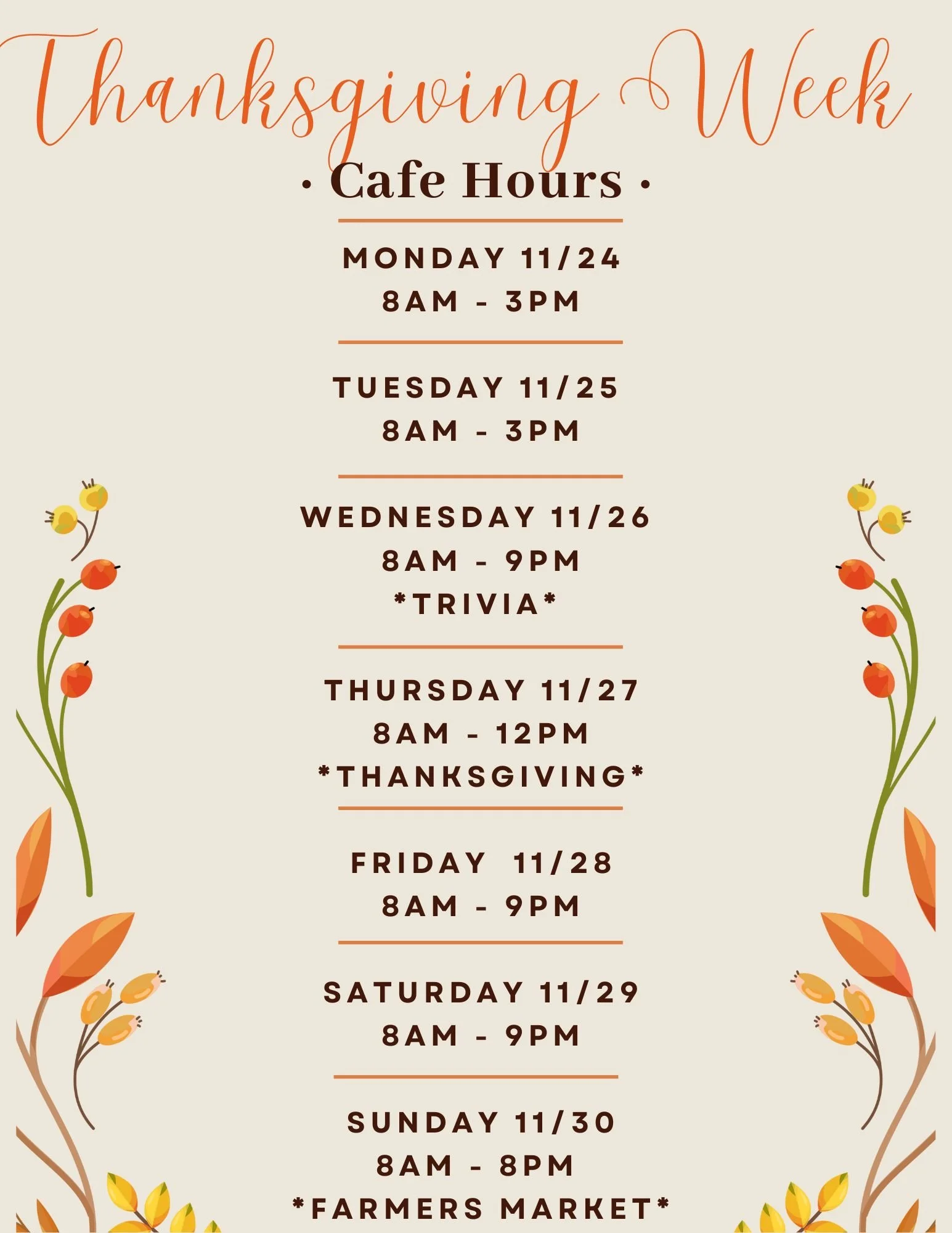 Thanksgiving Week Cafe Hours